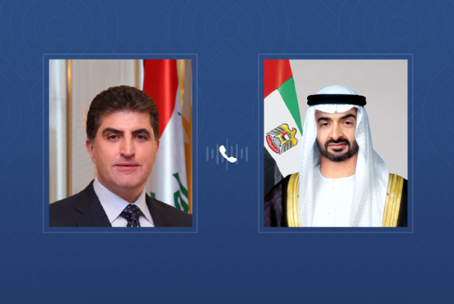 تلقى صاحب السمو الشيخ محمد بن زايد آل نهيان رئيس الدولة، حفظه الله، اليوم اتصالاً هاتفياً من نيجيرفان بارزاني رئيس إقليم كردستان العراق الشقيق.. بحثا خلاله التصعيد العسكري الذي تشهده المنطقة وتداعياته الخطيرة على الأمن والاستقرار الإقليميين.